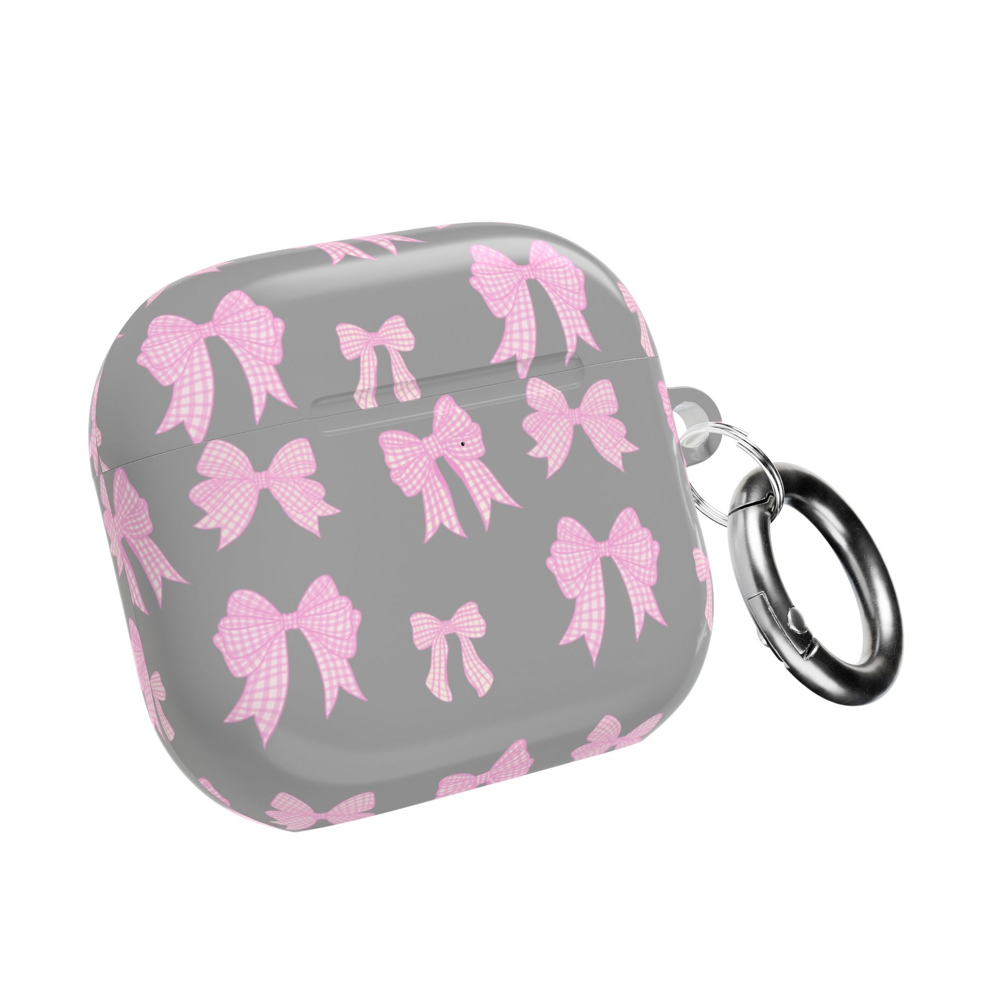 GREY PINK GINGHAM BOWS AIRPOD CASE