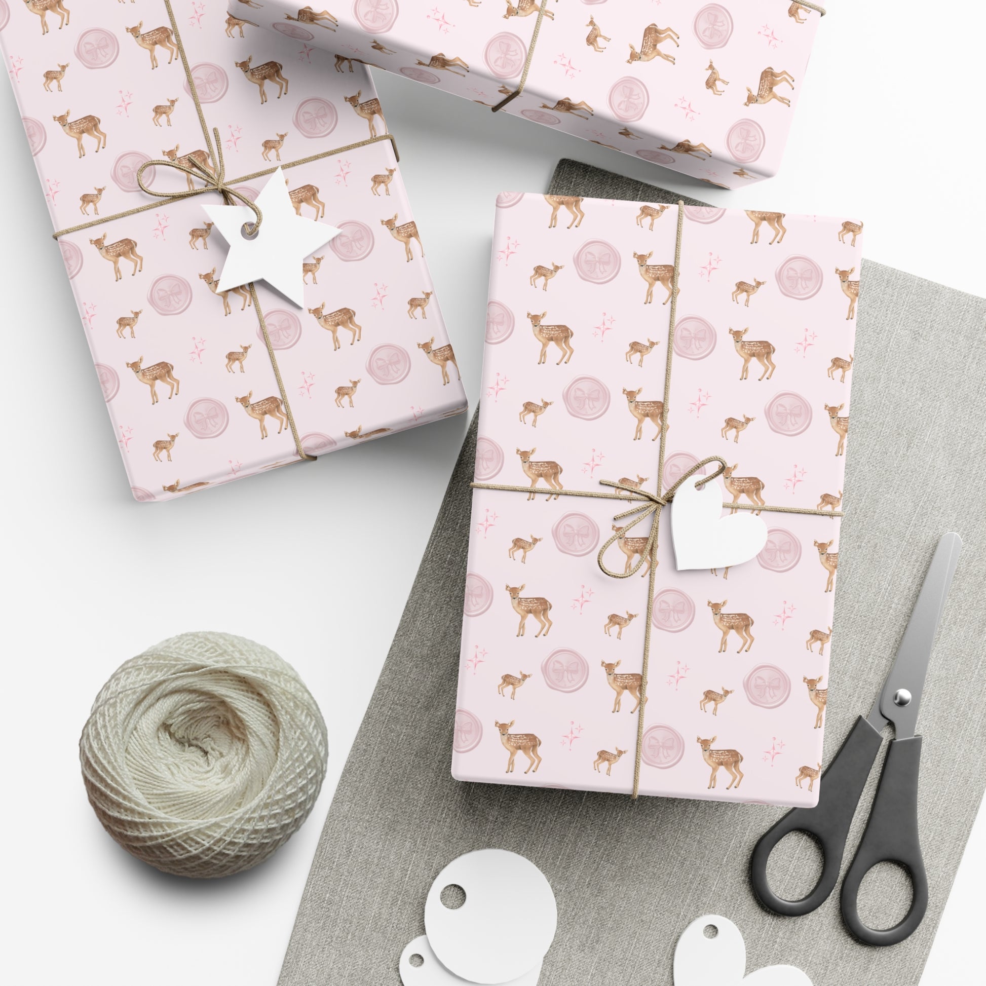 PINK CHRISTMAS DEER BOW WRAPPING PAPER ROLL