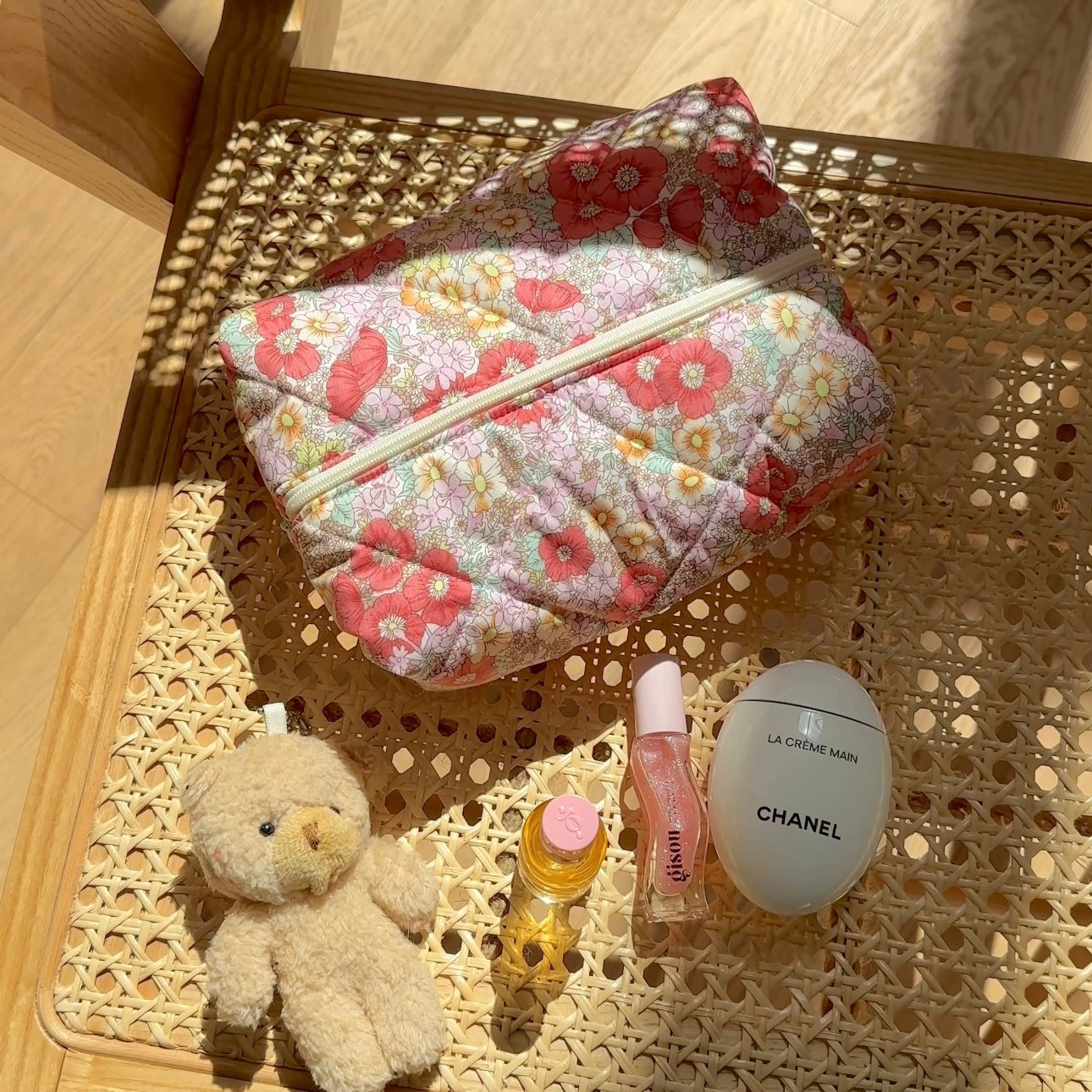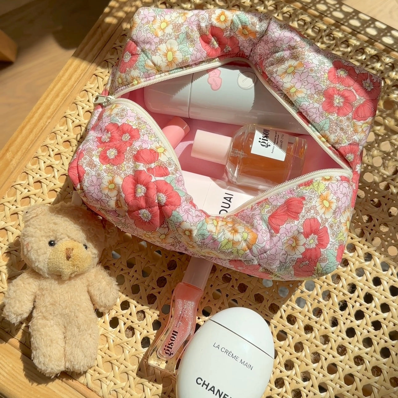 RED WATERLILY FLORAL MAKEUP BAG